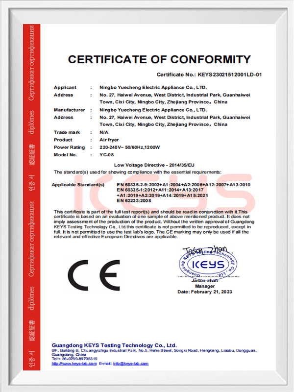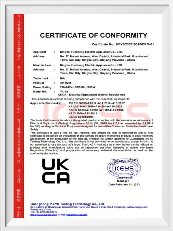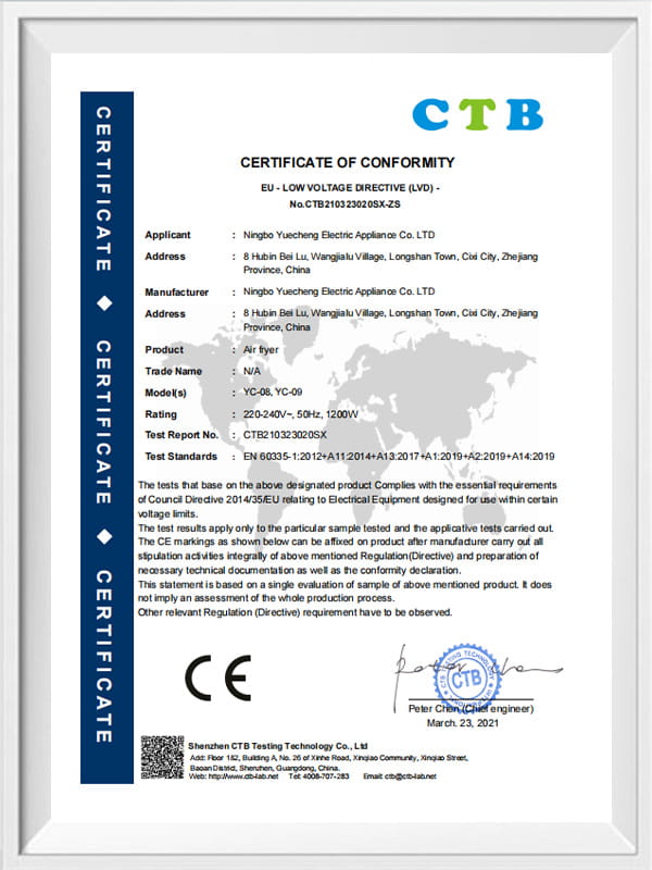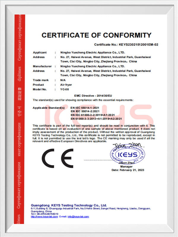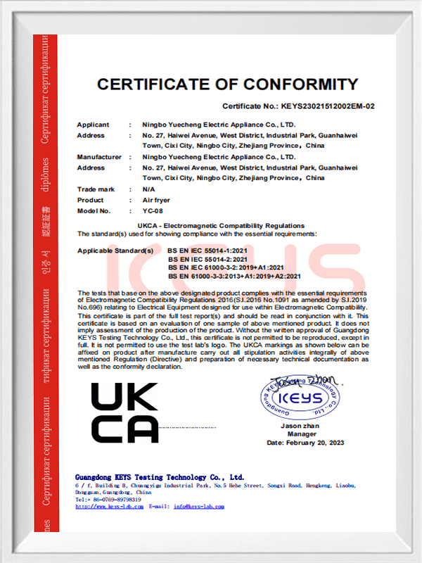 Certificering- Ningbo Yuecheng Electric Co., Ltd.